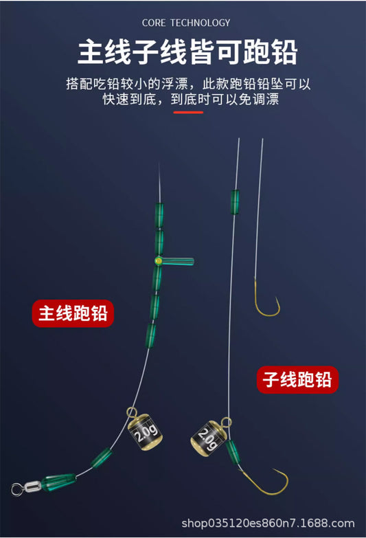 Stable fishing rig with sliding lead pendant /4p